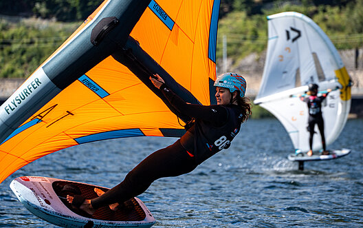Bei den Damen führt kein Weg an Viola Lippitsch vorbei. Sie sicherte sich nicht nur den Sieg im Racing, sondern gewann auch das Pumpfoil-Event souverän. Auf den Plätzen zwei und drei beim Racing folgten Sophia Lang und Luisa Kaiser. In der Race-Gesamtwertung liegt Viola nun mit 2000 Punkten klar in Führung. Auf Platz zwei folgt Alexandra Lippitsch (1455 Punkte), Rang drei geht an Sophia Lang (900 Punkte).